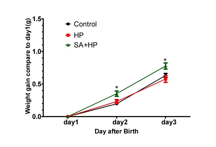 SA increased body weight on postnatal day 2 and day3