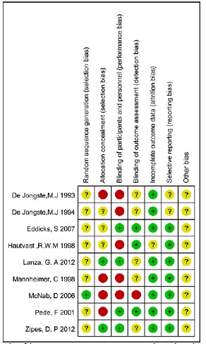 Figure 1: Risk of bias summary: review authors' judgements about each risk of bias item for each included study.