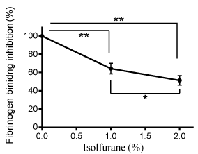 Isoflurane attenuated Mac-1 binding to fibrinogen
