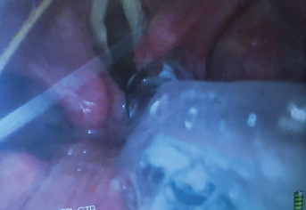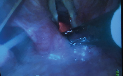 Figure 7: Endotracheal tube (ETT) cuff inflated just below vocal cords as visualized by the video-laryngoscope (VL).
