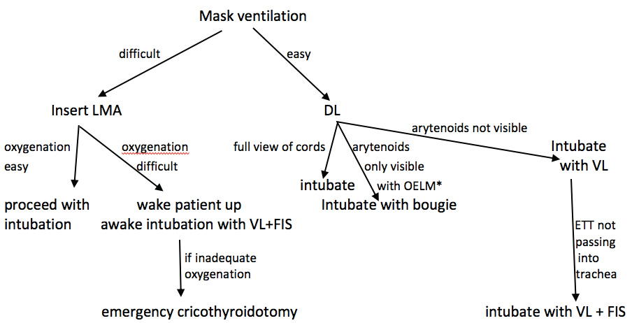 OELM: Optimal external laryngeal manipulation; DL: Direct laryngoscopy; LMA: Laryngeal mask airway; VL: Video laryngoscopy; FIS: Flexible intubation scope.