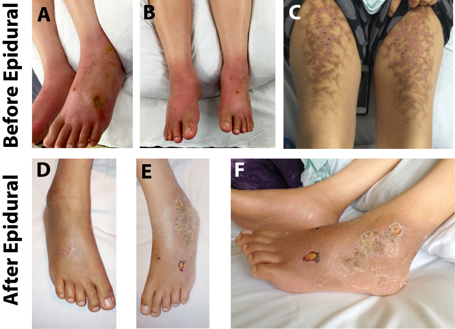 - Lee CE, Paulk K, Garvie K, Grieshaber E, Carter J, Ball B. Pediatric erythromelalgia treated with epidural ropivacaine infusion. JAAD case reports. 2019;5(4):306-308. doi:10.1016/j.jdcr.2019.01.029