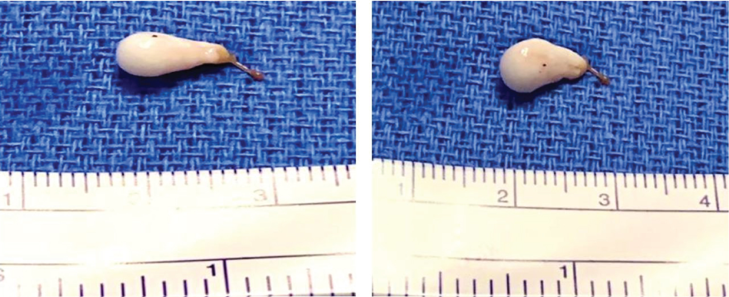Figure 2: Surgical resection of one neurocysticercosis scolex and associated cyst in 4th ventricle.
